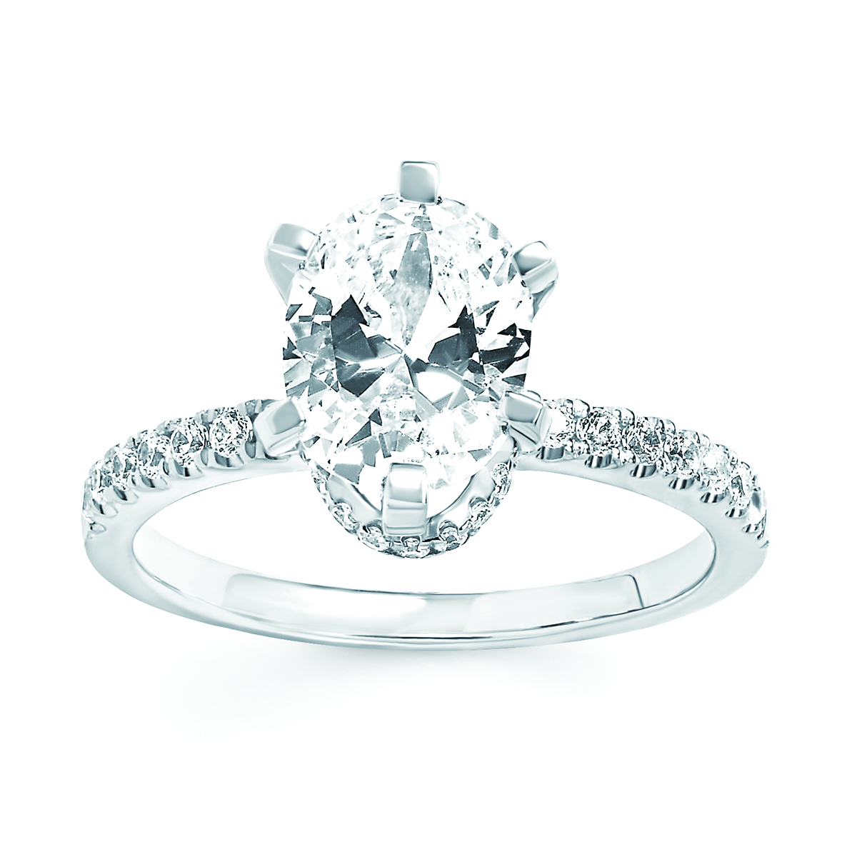 Engagement Ring Forever ElegantĀ® 1/4 Ctw. Diamond Semi Mount shown with 1.5 Ct. Oval Center Diamond in 14K Gold