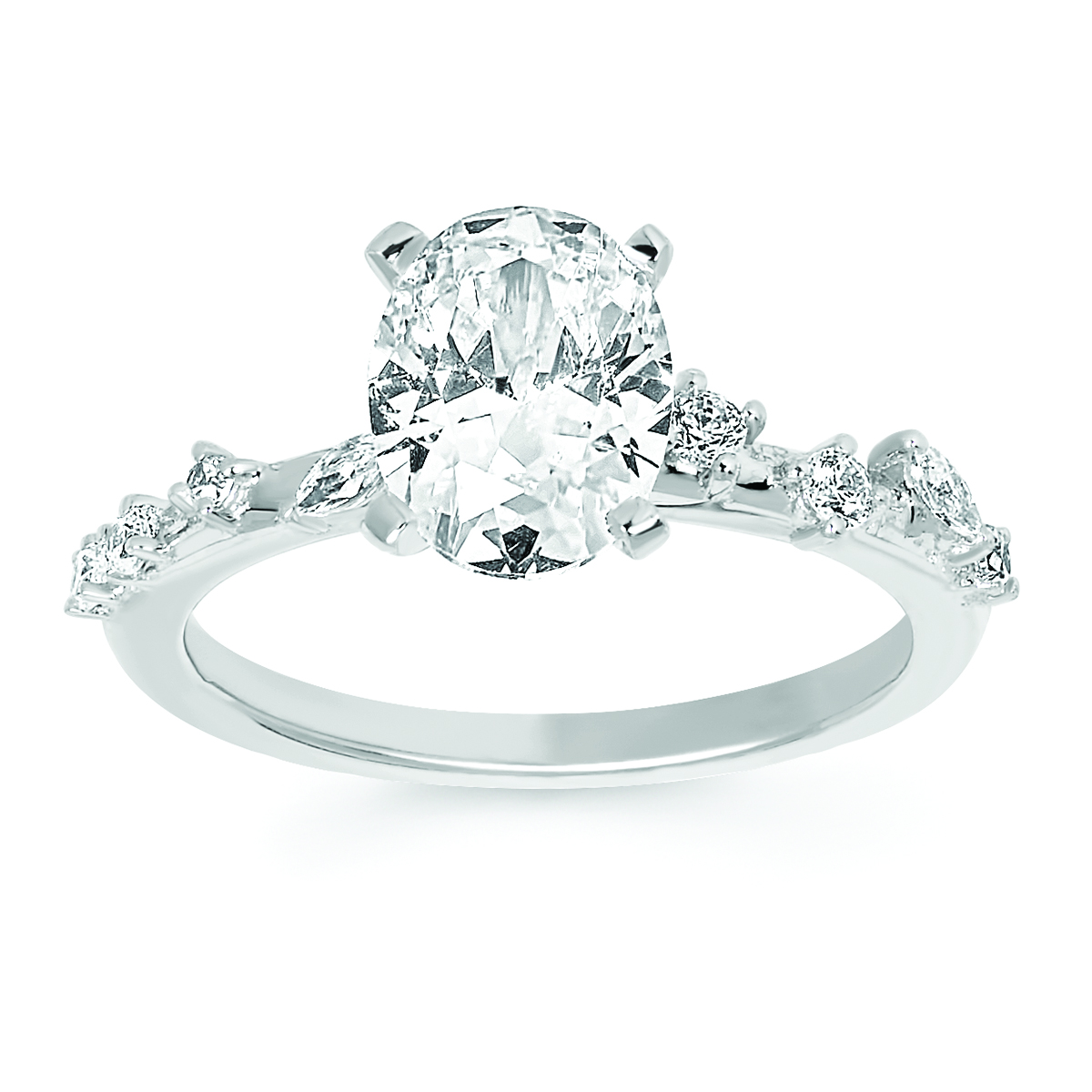 Engagement Ring Forever ElegantĀ® 1/5 Ctw. Diamond Semi Mount shown with 1 1/2 Ct. Oval Center Diamond in 14K Gold