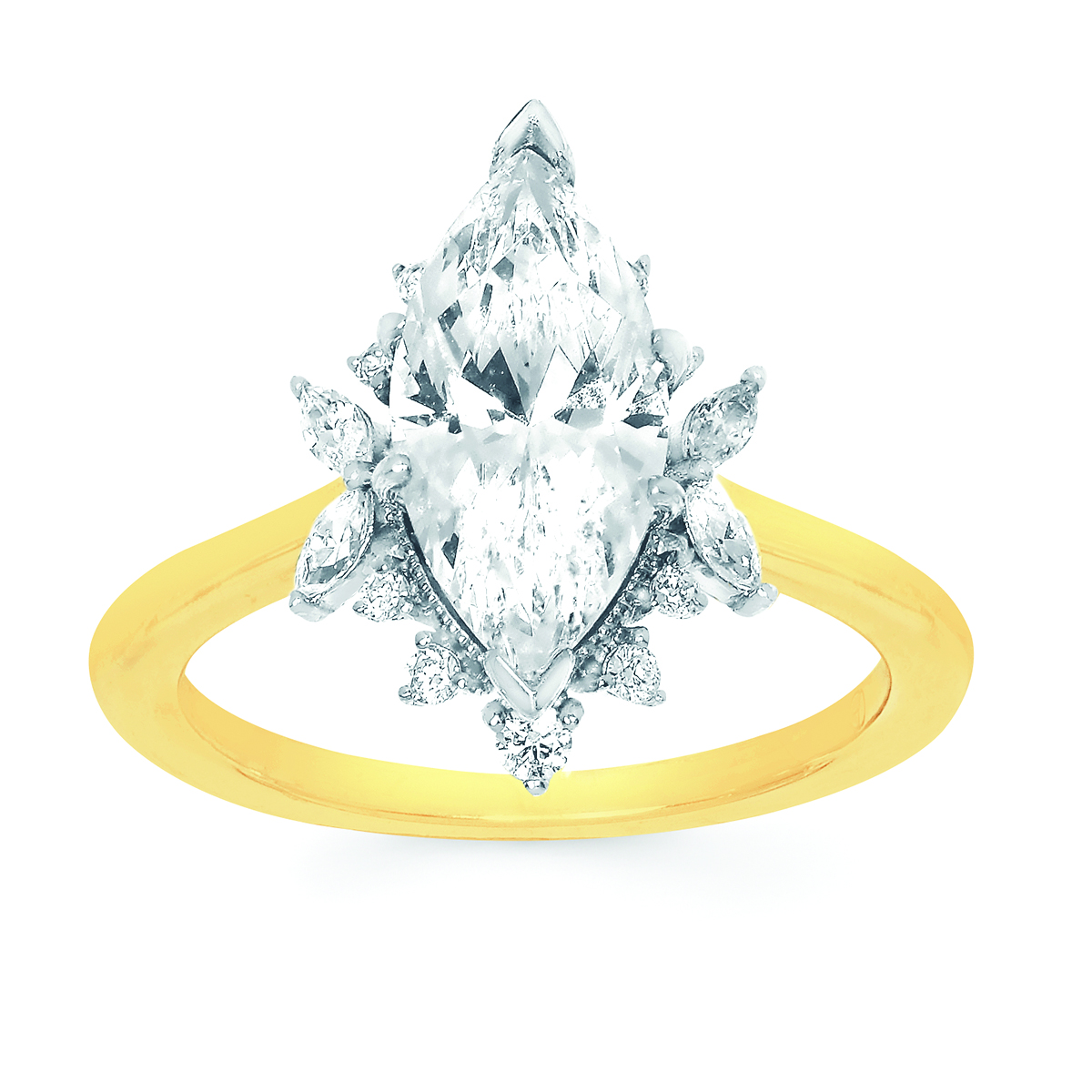 Engagement Ring Forever ElegantĀ® 1/4 Ctw. Diamond Semi Mount shown with 1 1/2 Ct. Marquise Center Diamond in 14K Gold