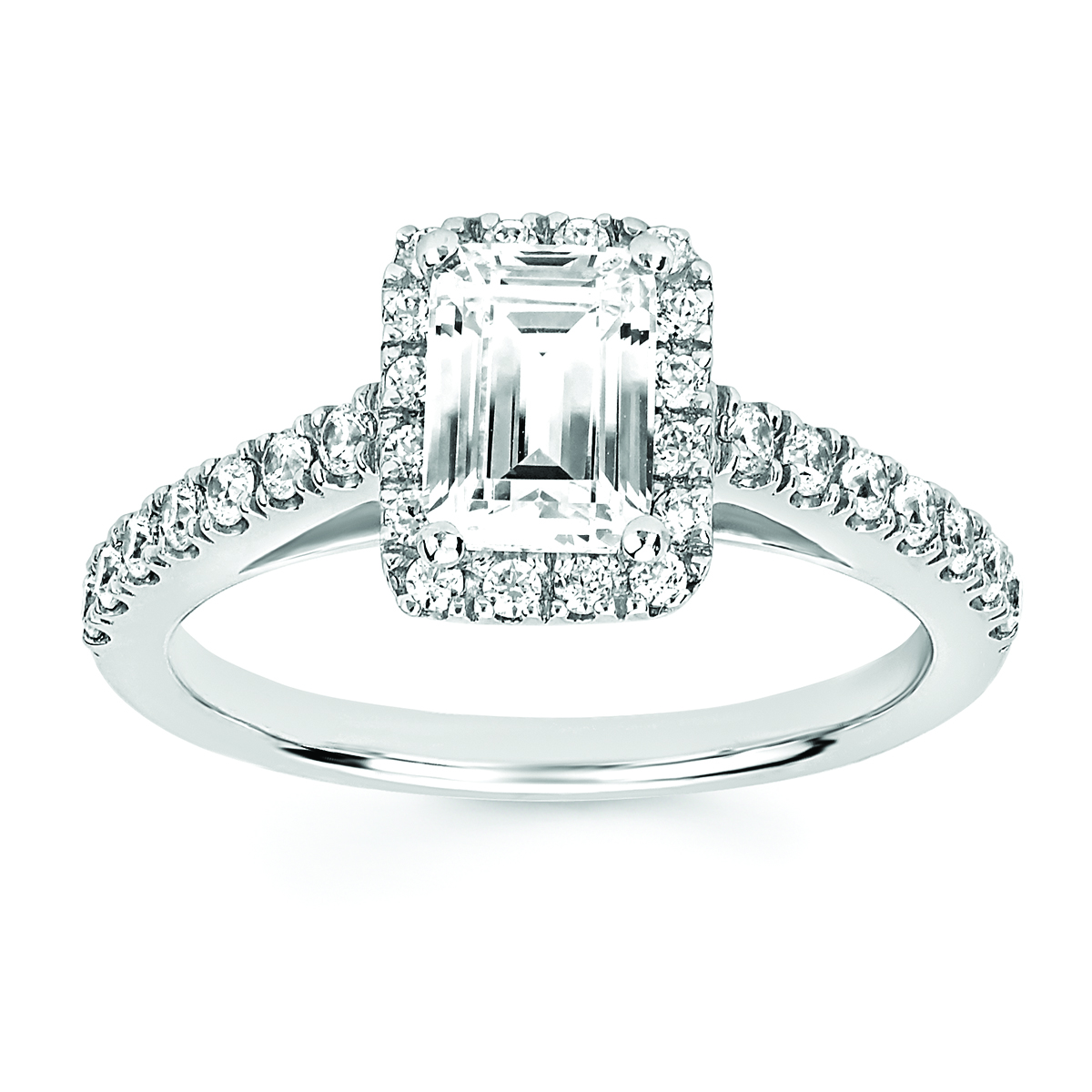 Engagement Ring Halo Bridal: 3/8 Ctw. Diamond Halo Semi Mount available for 3/4 Ct. Emerald Cut Center Diamond in 14K Gold
