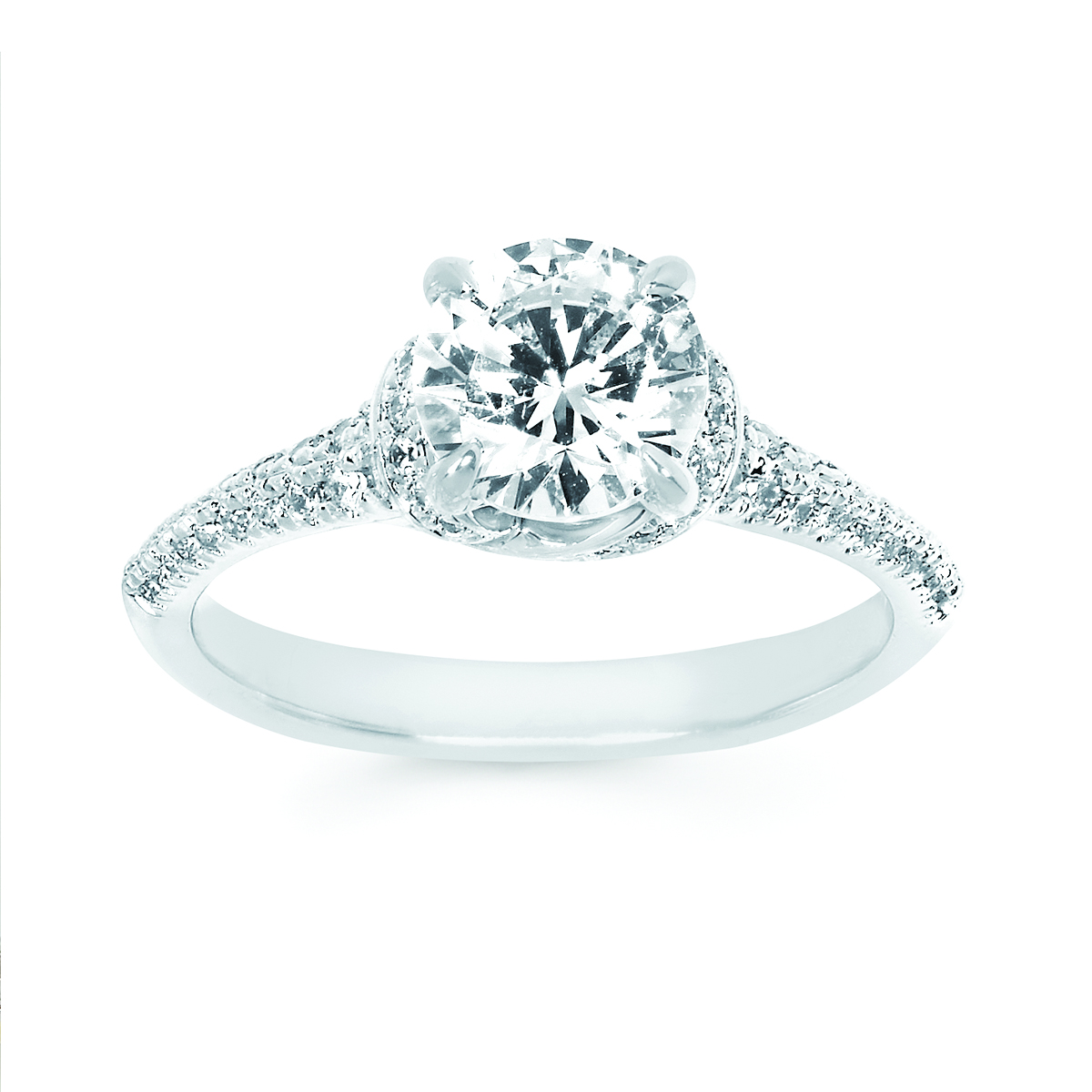 Engagement Ring Modern Bridal: 1/3 Ctw. Diamond Semi Mount shown with 1 1/2 Ct. Oval Center Diamond in 14K Gold
