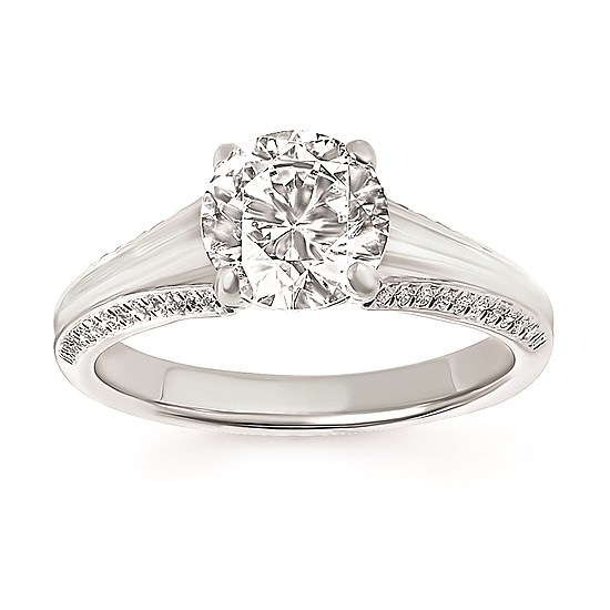 Engagement Ring Modern Bridal: 1/6 Ctw. Diamond Semi Mount shown with 1 1/2 Ct. Round Center Diamond in 14K Gold